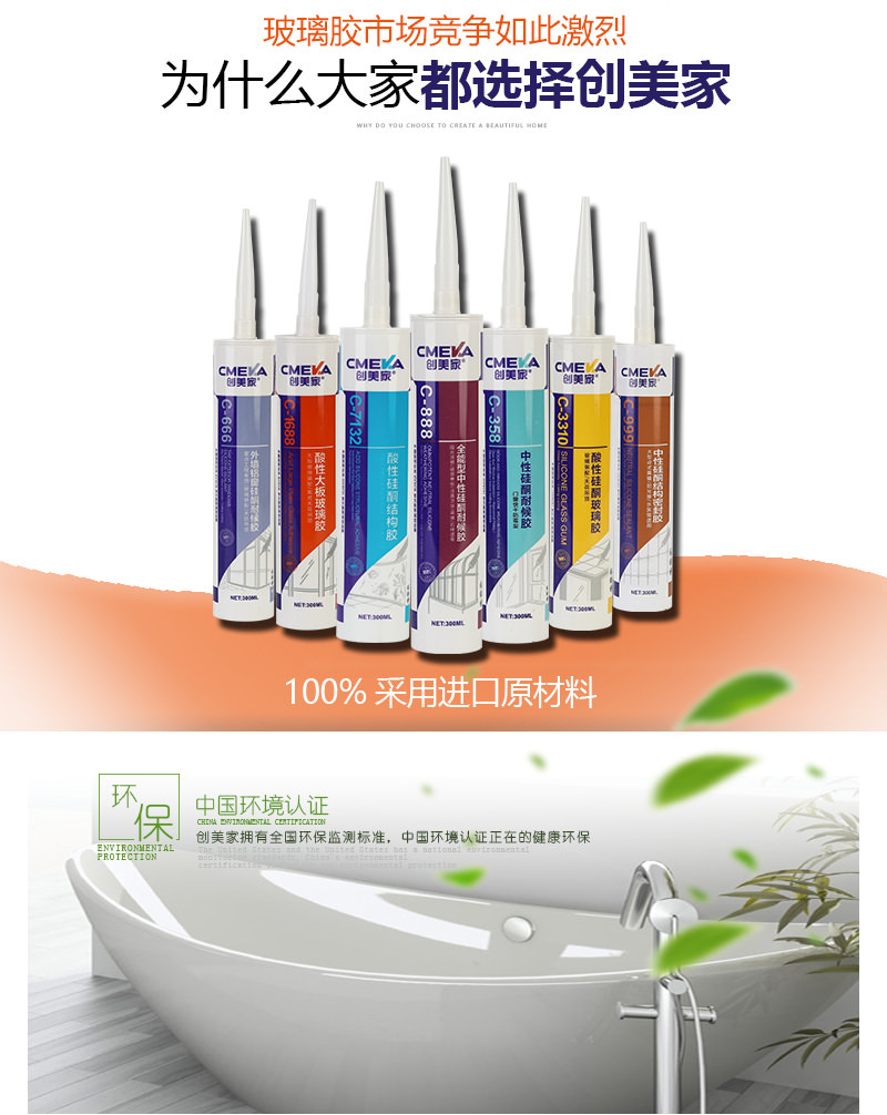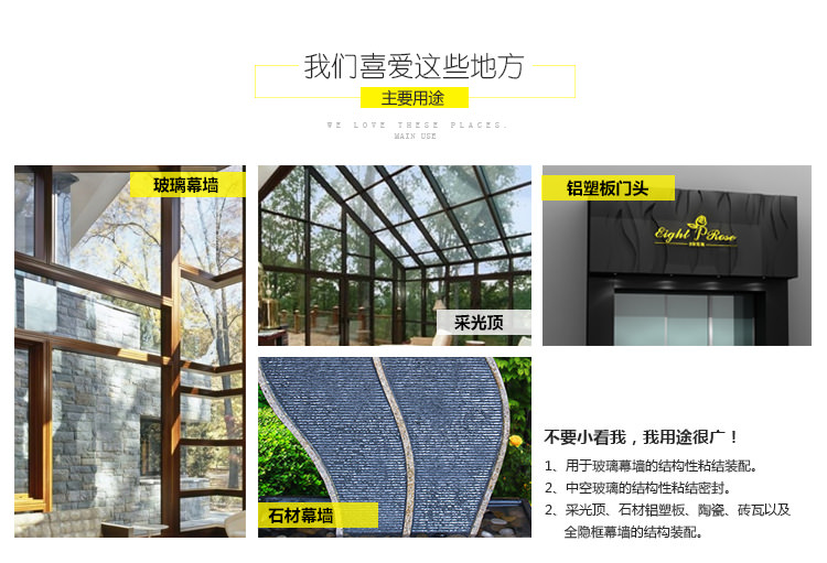1、創美家C-999為單組份、室溫固化硅 酮點式幕墻結構膠。